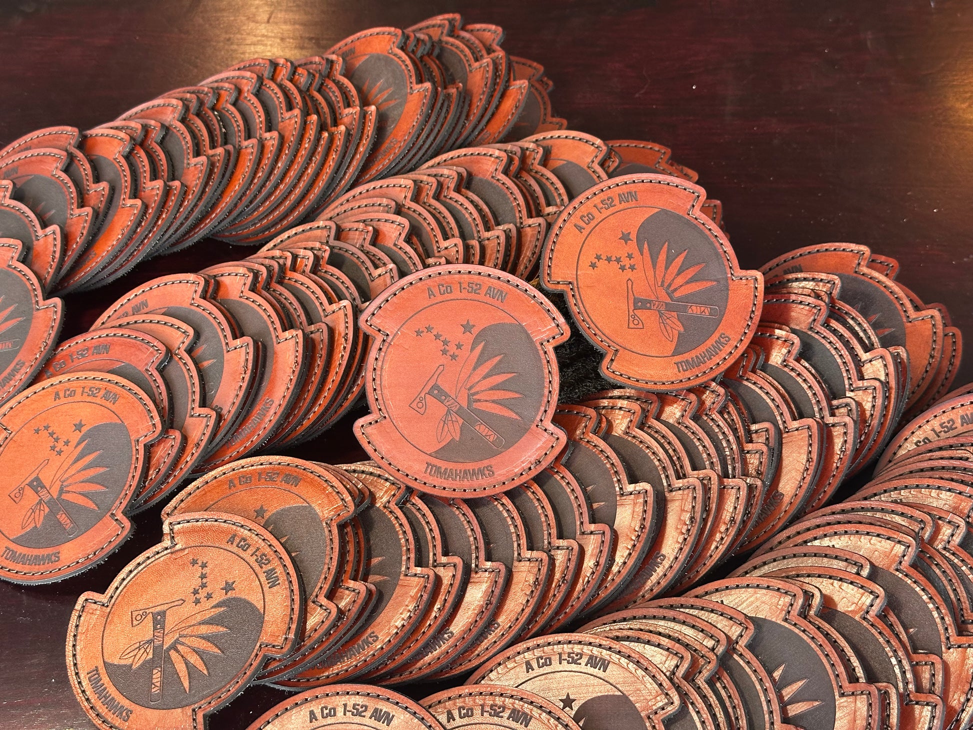 Flying Blackhawks in Alaska is pretty cool…but you know what would make it even cooler?? A custom leather Unit patch with Velcro sewn onto the back! Represent A Co 1-52 “Tomahawks” with style and pride!